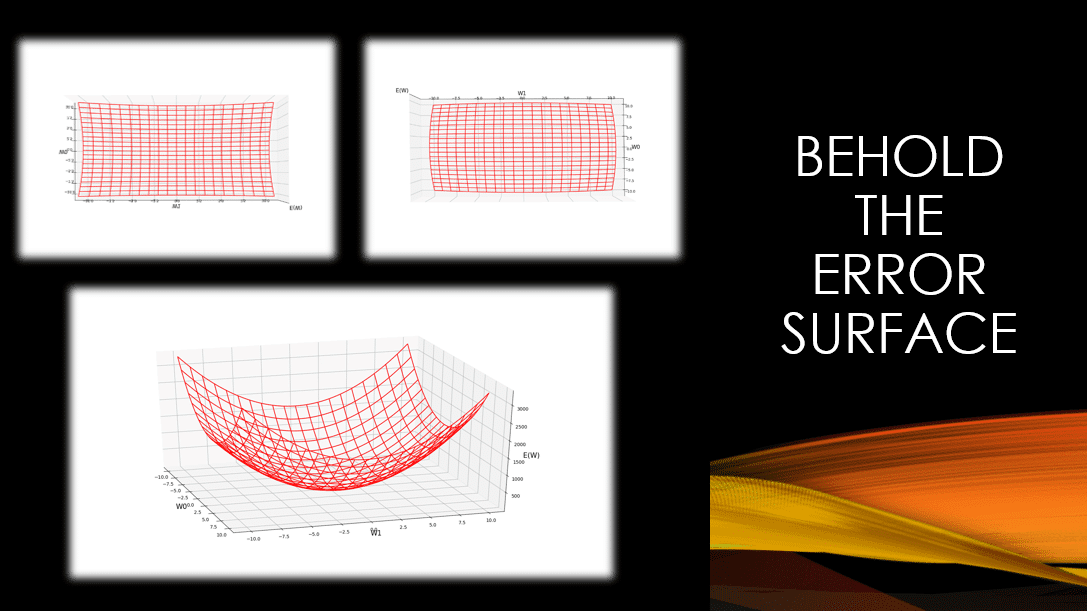 We have been talking about the hypothesis space and the gradient descent algorithm used by the Delta rule to search this hypothesis space of weights for the neural network. However, we have never actually had a glimpse into this hypothesis space. In this post, we will consider a simple neural network and actually visualize the entire hypothesis space of weights with their corresponding error values. This will help you understand, what it really means to say that: